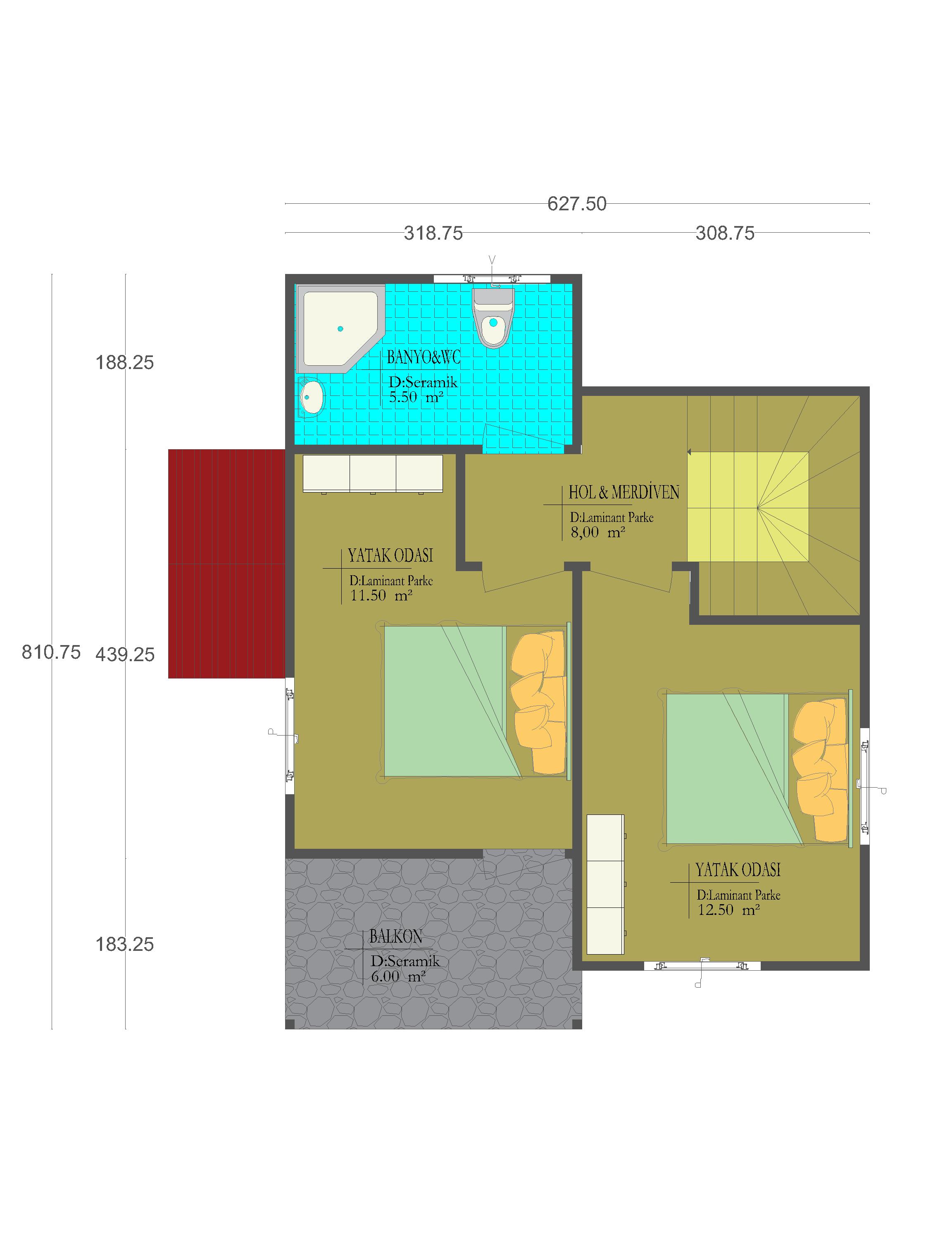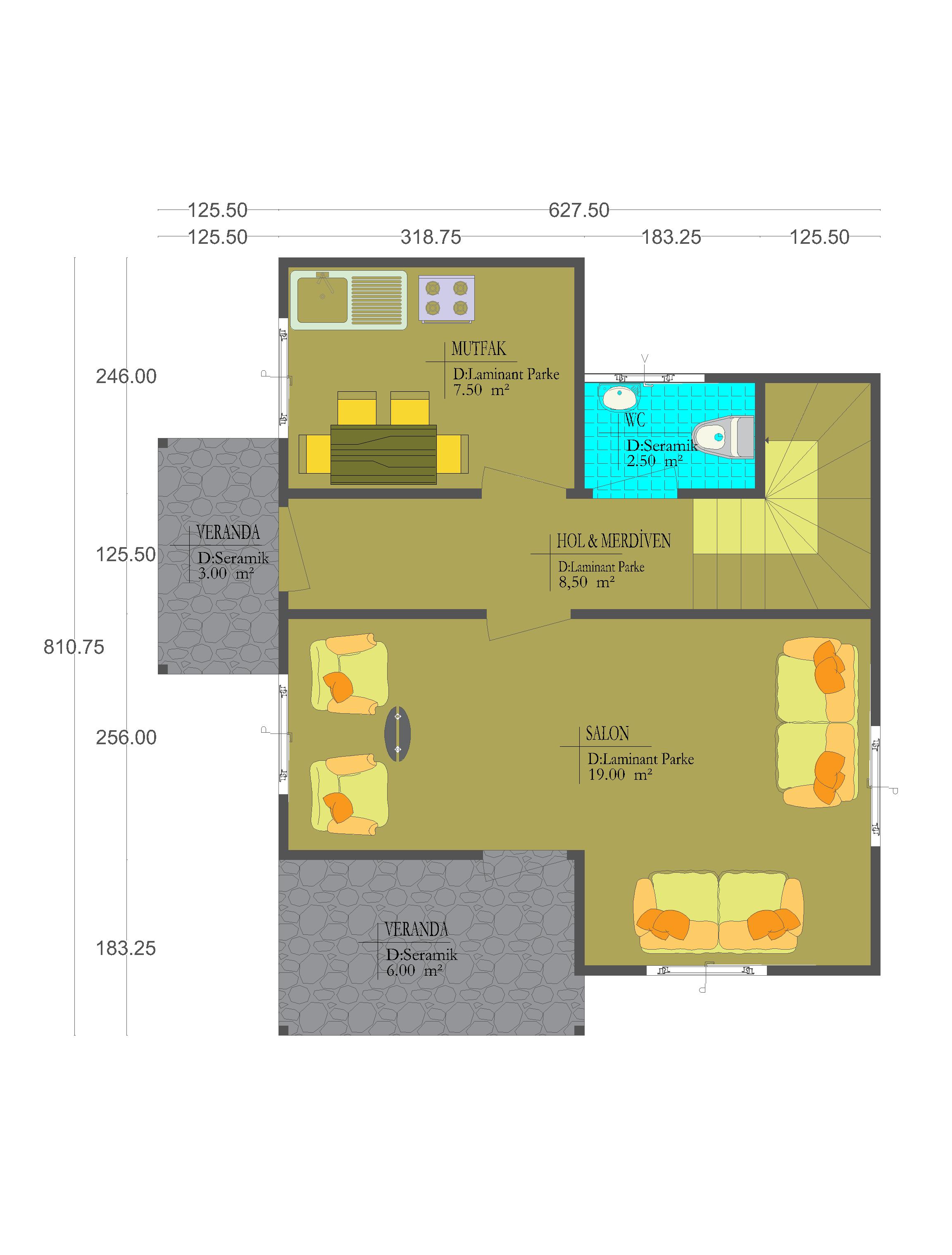 - İç -Dış Duvar Kalınlıkları : 10cm
