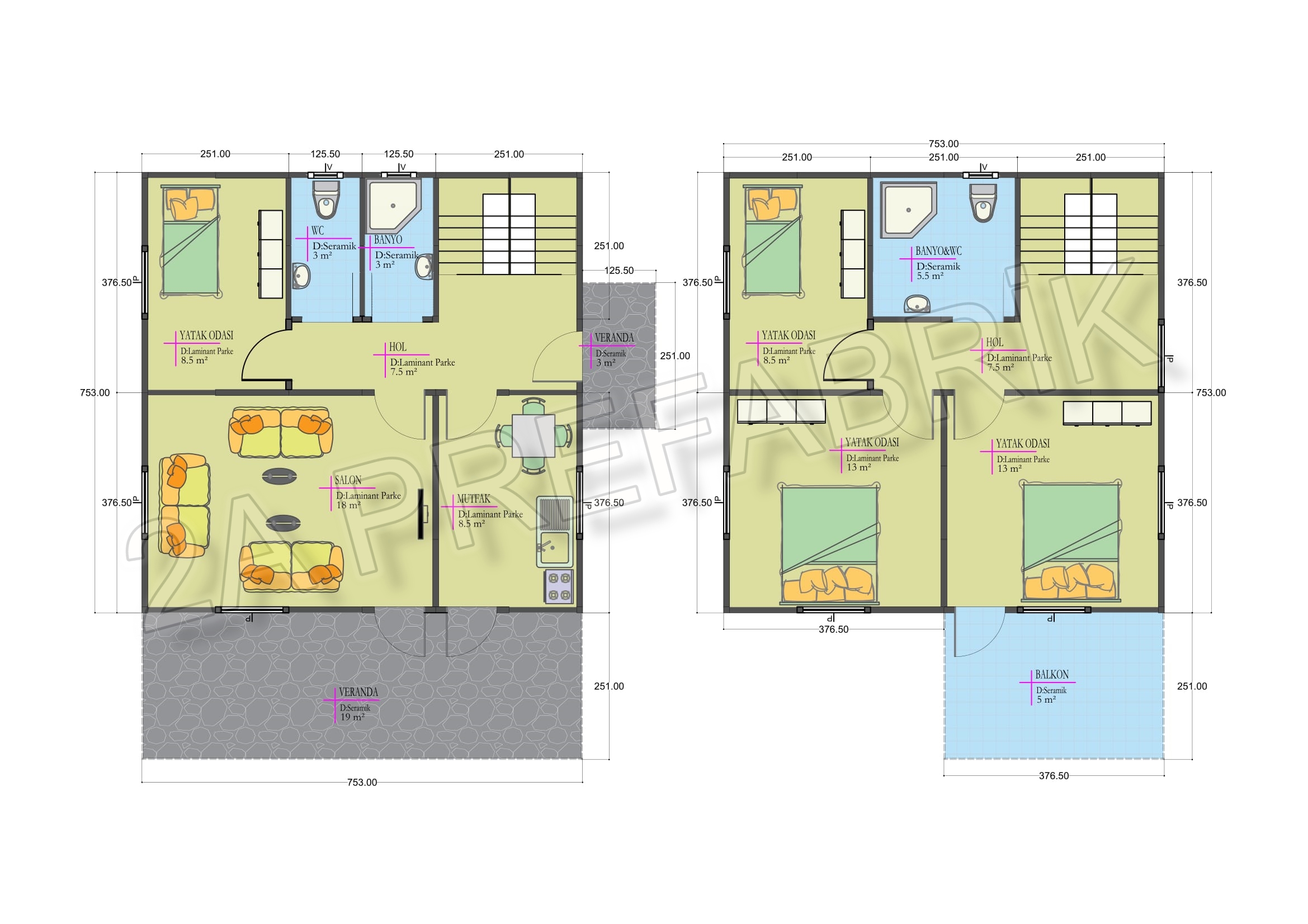 146m² İki Katlı Prefabrik Ev