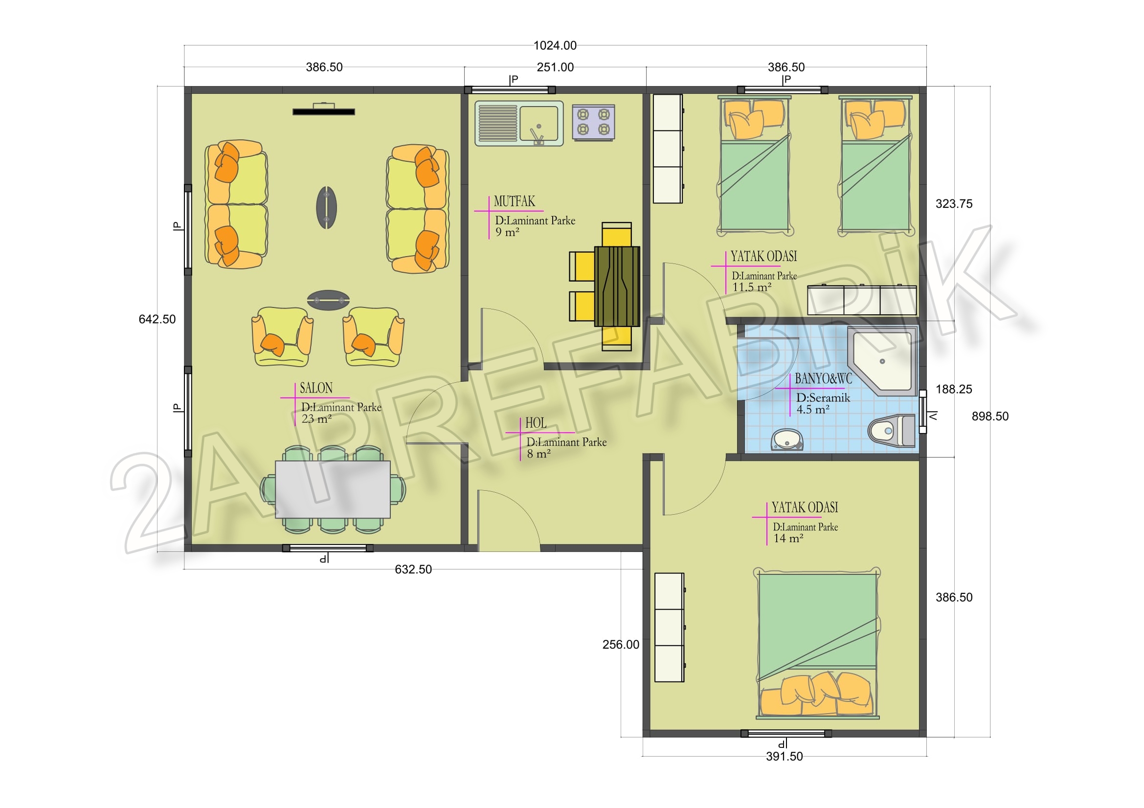 - Tavan Yükseklik : 2.50mt