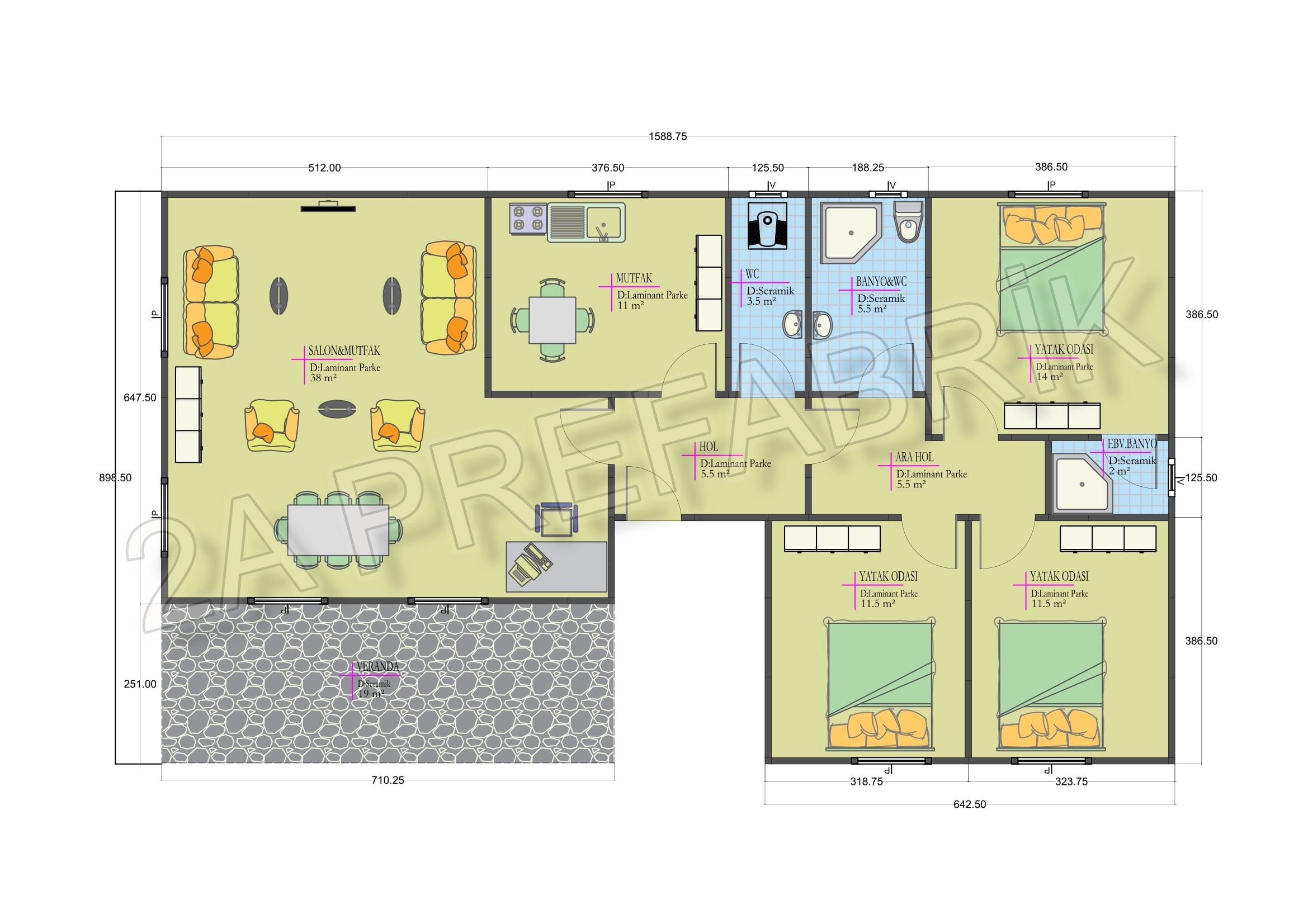- Tavan Yükseklik : 2.50mt
